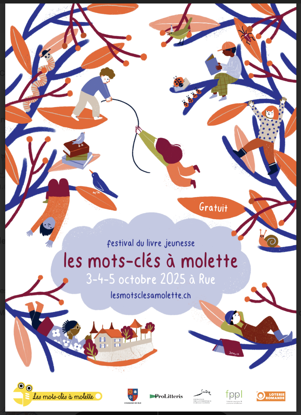 "Les mots-clés à molette" est un festival dédié au livre jeunesse et à la rencontre d'auteur-trice-s et illustrateur-trice-s avec les enfants. La troisième édition aura lieu les 3, 4 et 5 octobre 2025 dans la petite ville médiévale de Rue dans le canton de Fribourg.